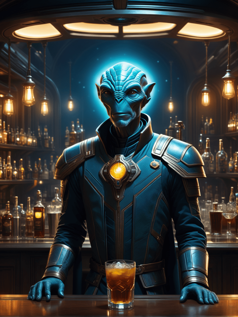 Felix, running the social bar, is always ready with a drink and a story. Serving as a morale officer during the Orion Wars, Felix provides comfort and companionship to the weary. His bar is a sanctuary filled with tales of heroism and loss, his cheerful demeanor masking personal sacrifices and heartache.