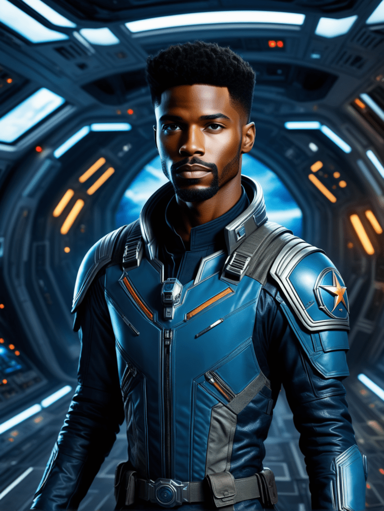 Ensign Quinn, a new recruit, is eager to prove their worth.”Ensign Quinn, a new recruit, is eager to prove their worth amidst the chaos of the Orion Wars. The scars of battle have left them with a fierce determination to excel. Quinn’s boundless energy and optimism are infectious, but they harbor a profound sense of loss and a desire for redemption.