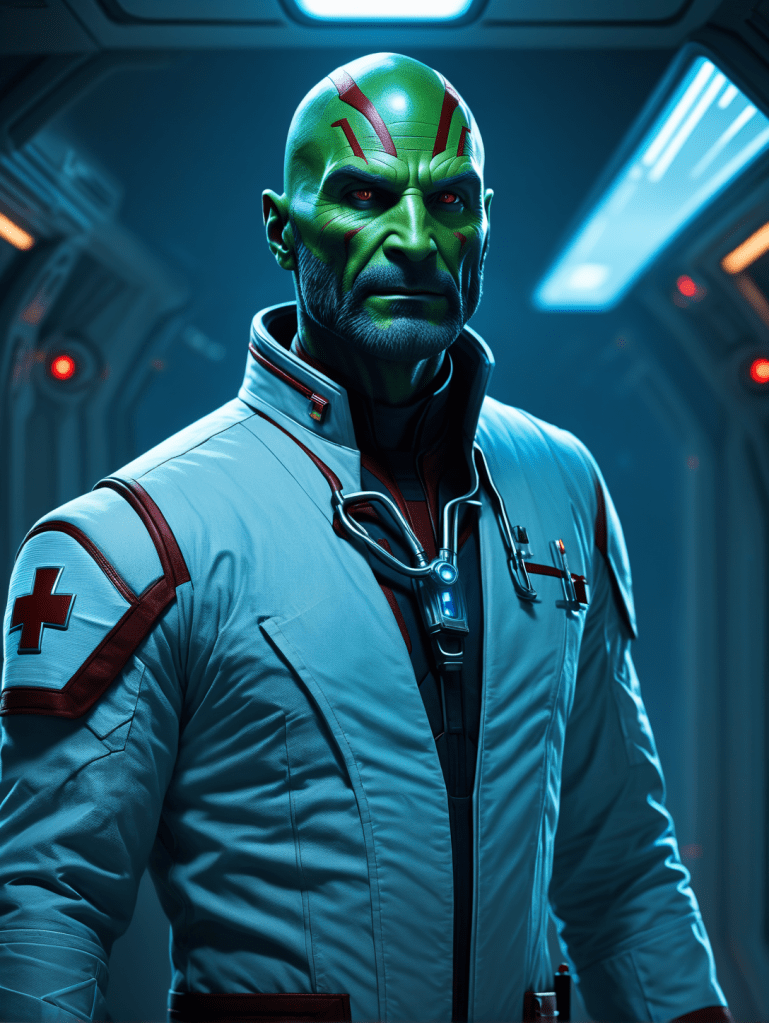 Nurse Drax, quick-witted and resourceful, serves tirelessly in the Quarantine Ward amidst the ongoing Orion Wars. His experience treating injuries and illnesses under dire conditions has made him exceptionally adaptable. Known for his sarcastic humor, Drax is a stalwart presence, yet there’s an air of mystery about his past.