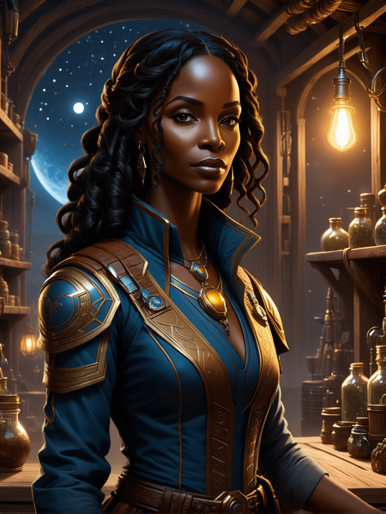 rader Imani runs the general store and is always in the know about the latest gossip. During the Orion Wars, she uses her resourcefulness to smuggle supplies to war-torn areas. Her connections run deep, and her past dealings are shrouded in mystery. Some say she has ties to both sides of the conflict, making her a figure of intrigue and suspicion.
